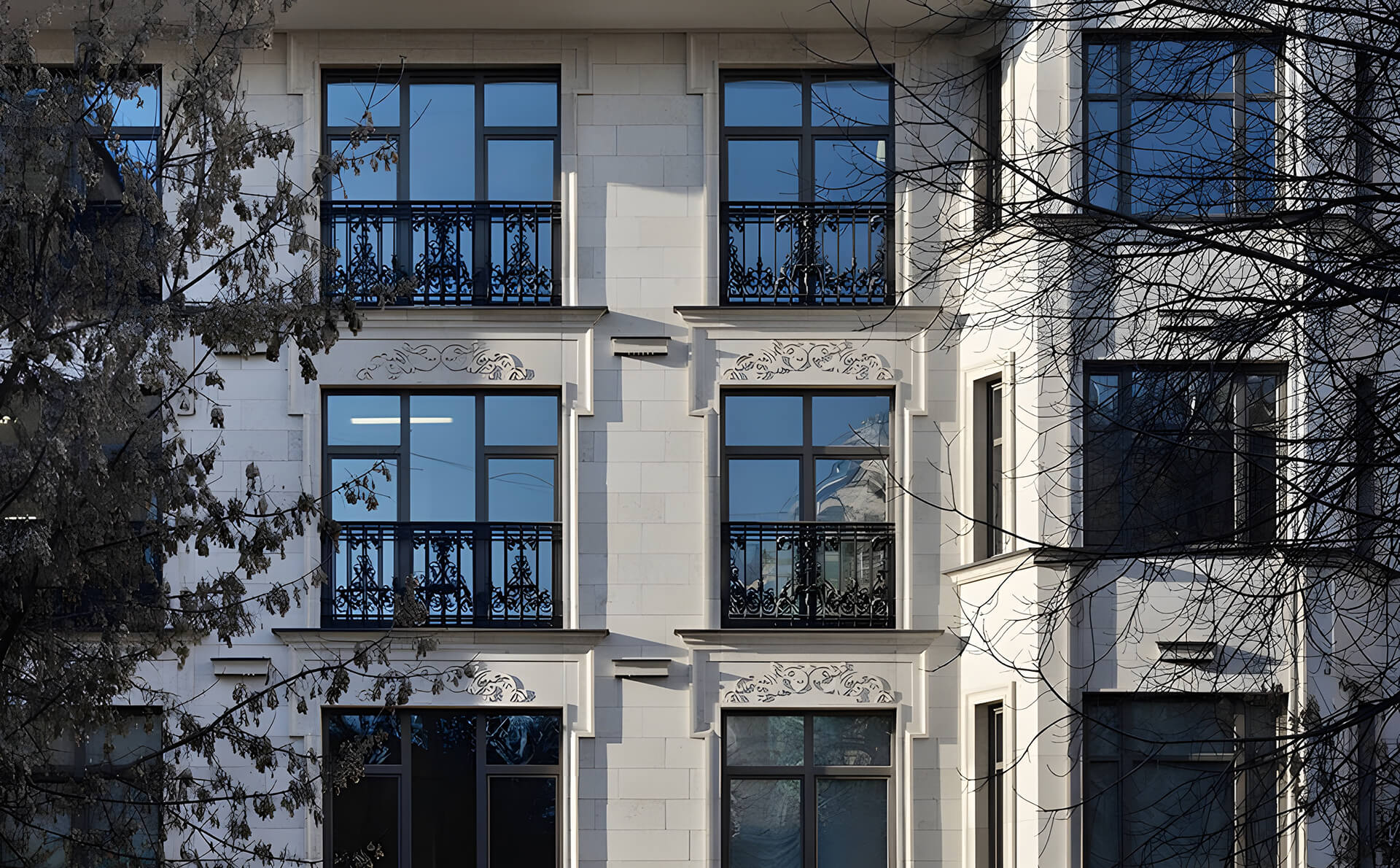 Архитектурная концепция дома «Булгаков» вдохновлена парижскими особняками, что отражается в элегантных фасадах из натурального камня, изящных французских балконах и просторных эркерах. Детали оформления подчеркивают утонченность и стиль, создавая гармоничное сочетание классической архитектуры и современного комфорта. Проект разработан архитектурной студией «А-Б студия», известной своими высококлассными проектами в Москве.